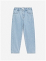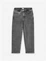 Джинсы с широкой посадкой и прямыми ногами. Эластичный пояс, застежка на молнию и карманы спереди и сзади.