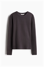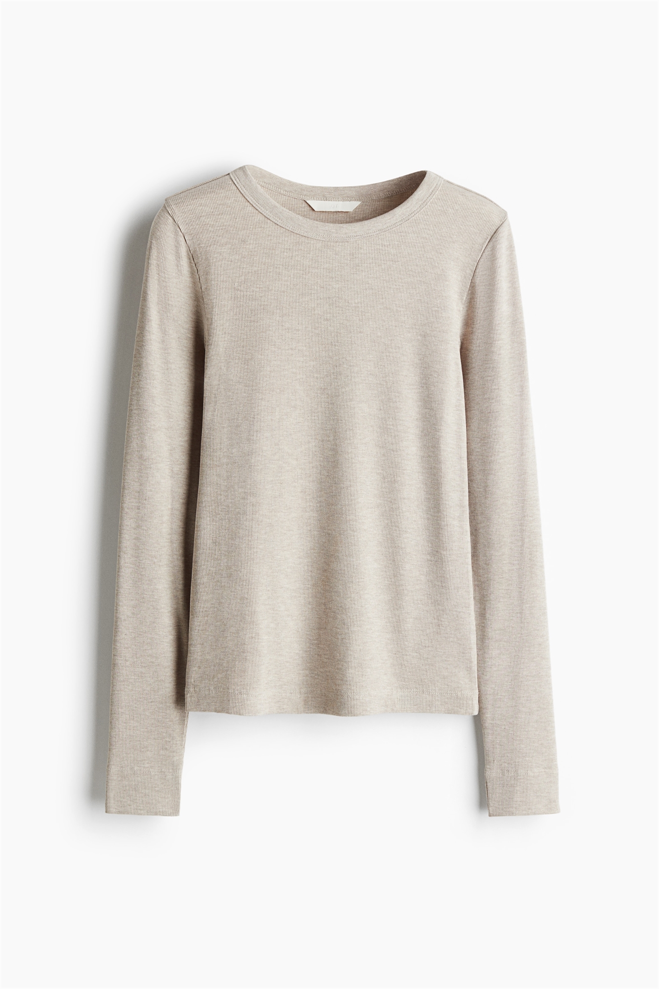 Облегающий топ из мягкого ребристого трикотажа из смеси хлопка с круглым вырезом и длинными рукавами.