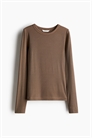 Облегающий топ из мягкого ребристого трикотажа из смеси хлопка с круглым вырезом и длинными рукавами.