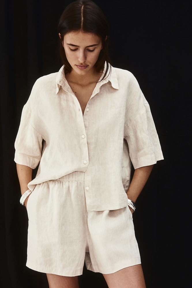 Шорты свободного покроя из воздушного льна с высокой эластичной талией и незаметными боковыми карманами.