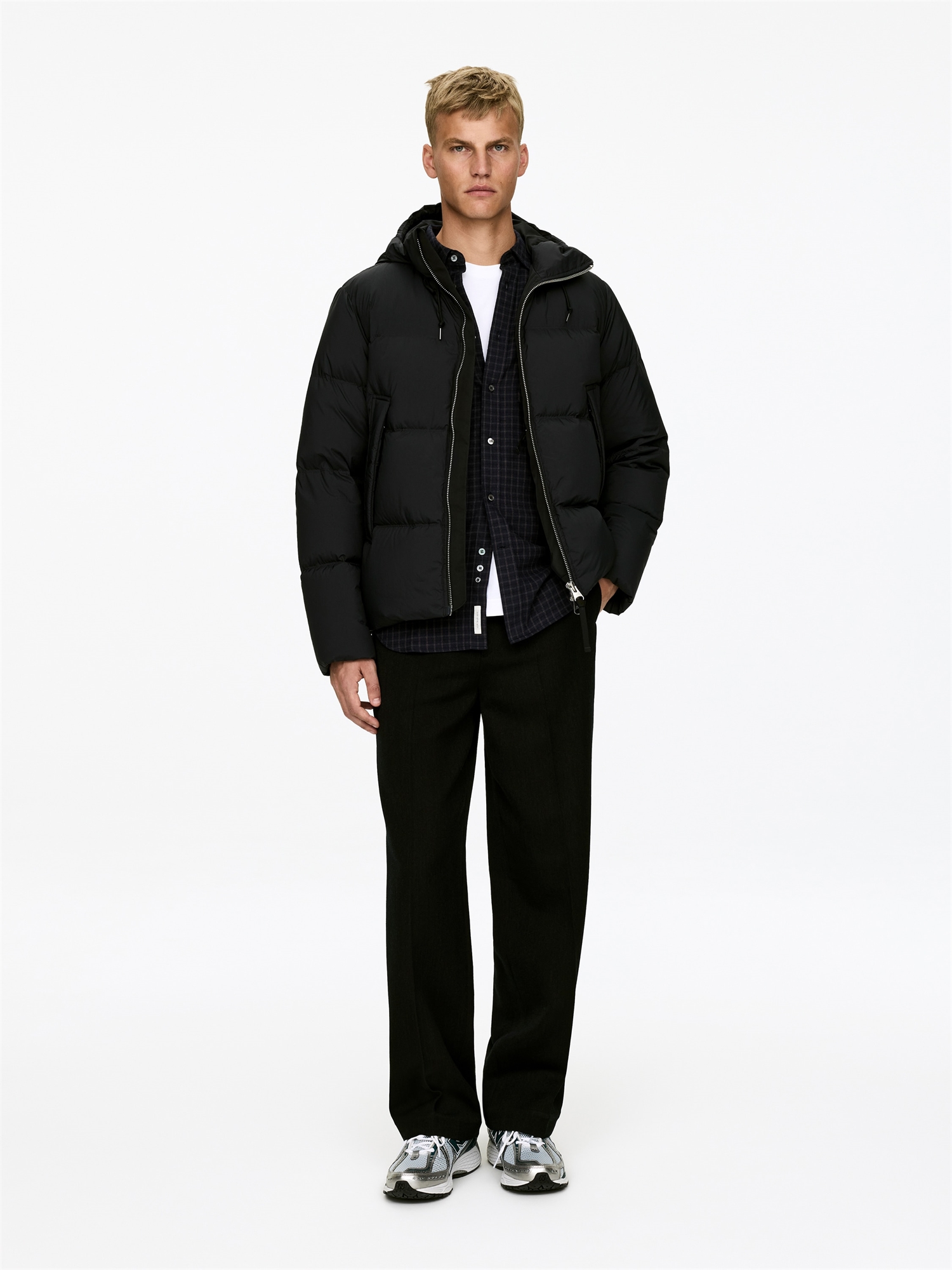 Стеганая куртка средней длины, наполненная смесью пуха и перьев. Эта модель унисекс обеспечивает превосходный теплоизоляционный комфорт в сухую и холодную погоду. Капюшон с утягивающим шнурком и застежкой-молнией спереди и защитой на молнии внизу. Эластичные крепления на манжетах и подол защищают от холодного ветра. Накладные карманы со скрытыми кнопками. Два внутренних кармана, один на молнии и один на кнопке. Изделия Upcycled Down наполнены переработанным пухом и перьями, полученными от Re:Down®. Эти материалы, собранные из использованного текстиля, стираются и стерилизуются при высоких температурах без использования химикатов. Рост женщины 177 см/5'10", размер MT Рост мужчины 189 см/6'2", размер M