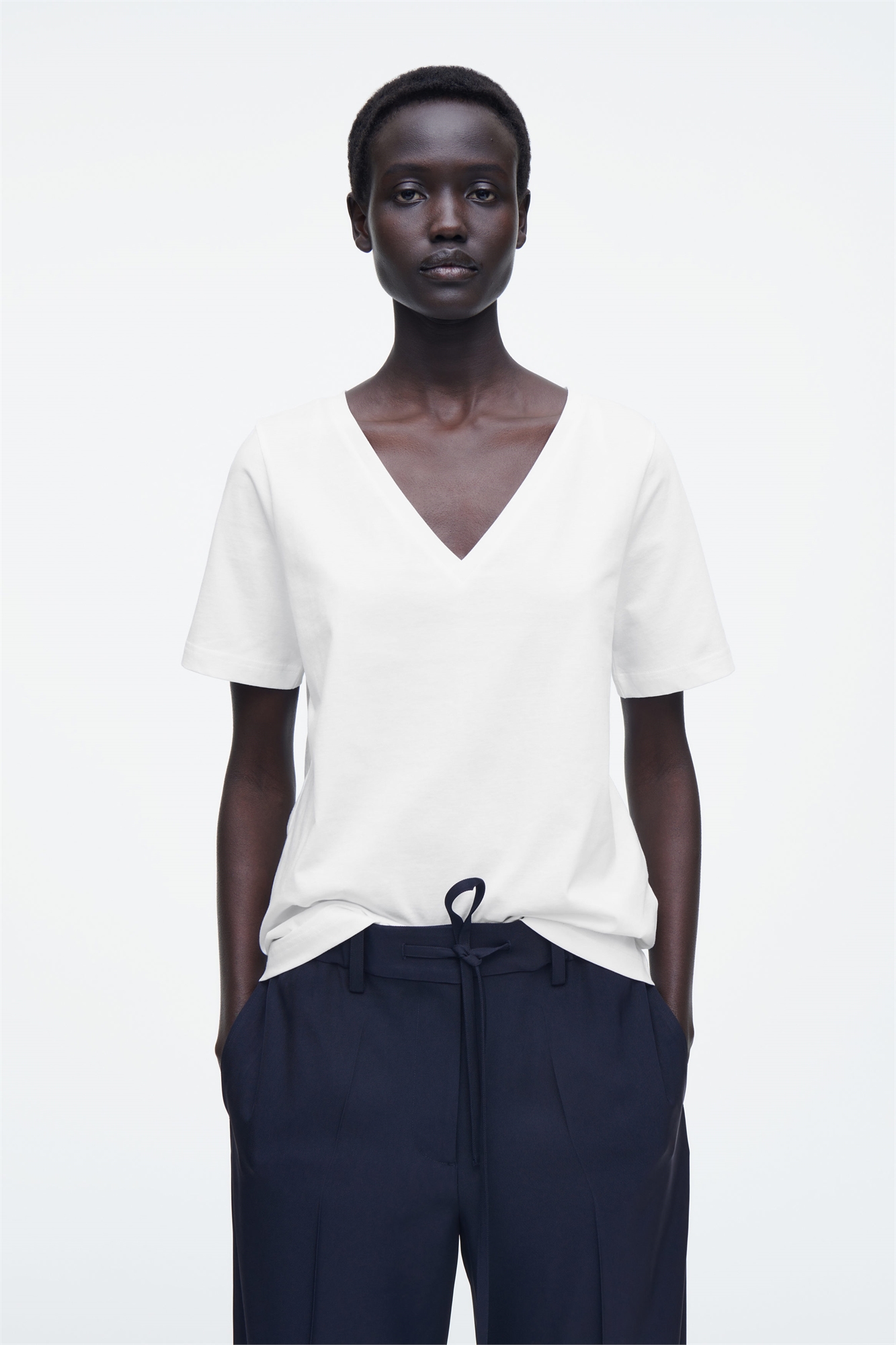 Качественные футболки являются краеугольным камнем коллекции COS с самого первого дня. Эта футболка из мягкого джерси из органического хлопка выполнена в свежем белом цвете. Футболка с V-образным вырезом, плотно прилегающим к телу, отделана аккуратной строчкой по краям. Regular fit, 150gsm Короткие рукава Органический хлопок выращен из негенетически модифицированных семян без использования химических удобрений и пестицидов Оболочка: 100% органический хлопок. Без учета отделки / Машинная стирка Длина по спинке размера S составляет 62,5 см / Модель носит размер S