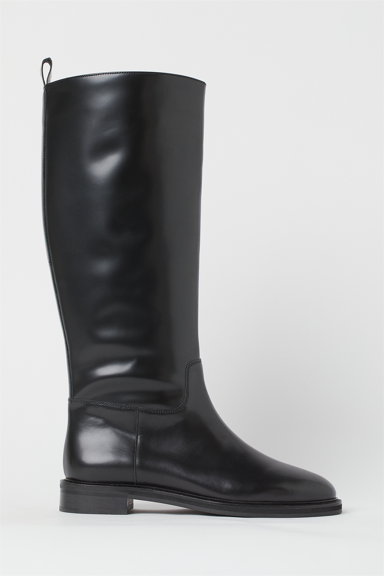 Сапоги из гладкой кожи с закругленным носком. Сапоги имеют фиксированный голенище высотой до колена с вкладкой сзади. Каблук 3 см.