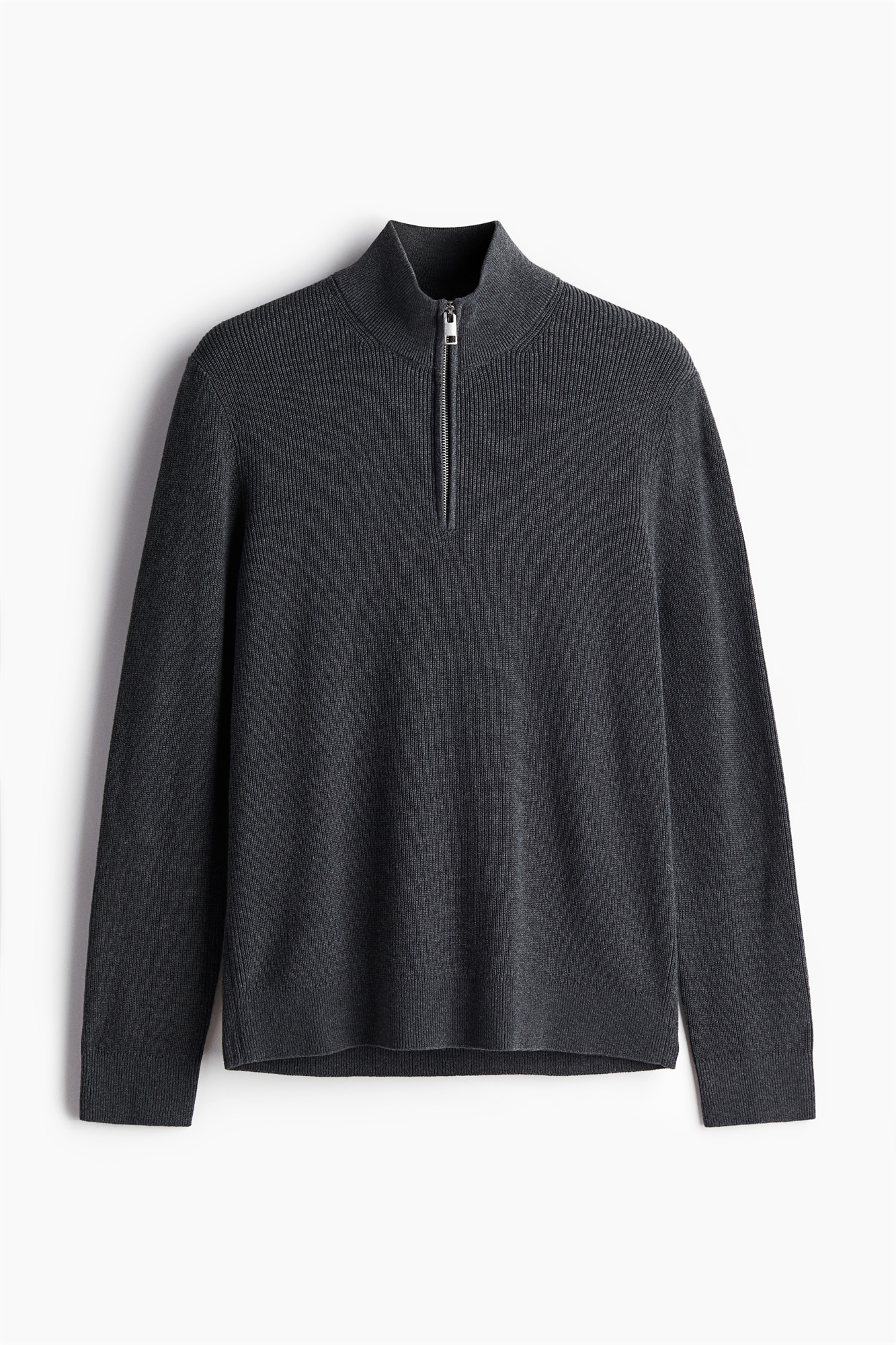 Облегающий джемпер из тонкого трикотажного хлопка с воротником-стойкой, застежкой на молнию спереди и длинными рукавами.