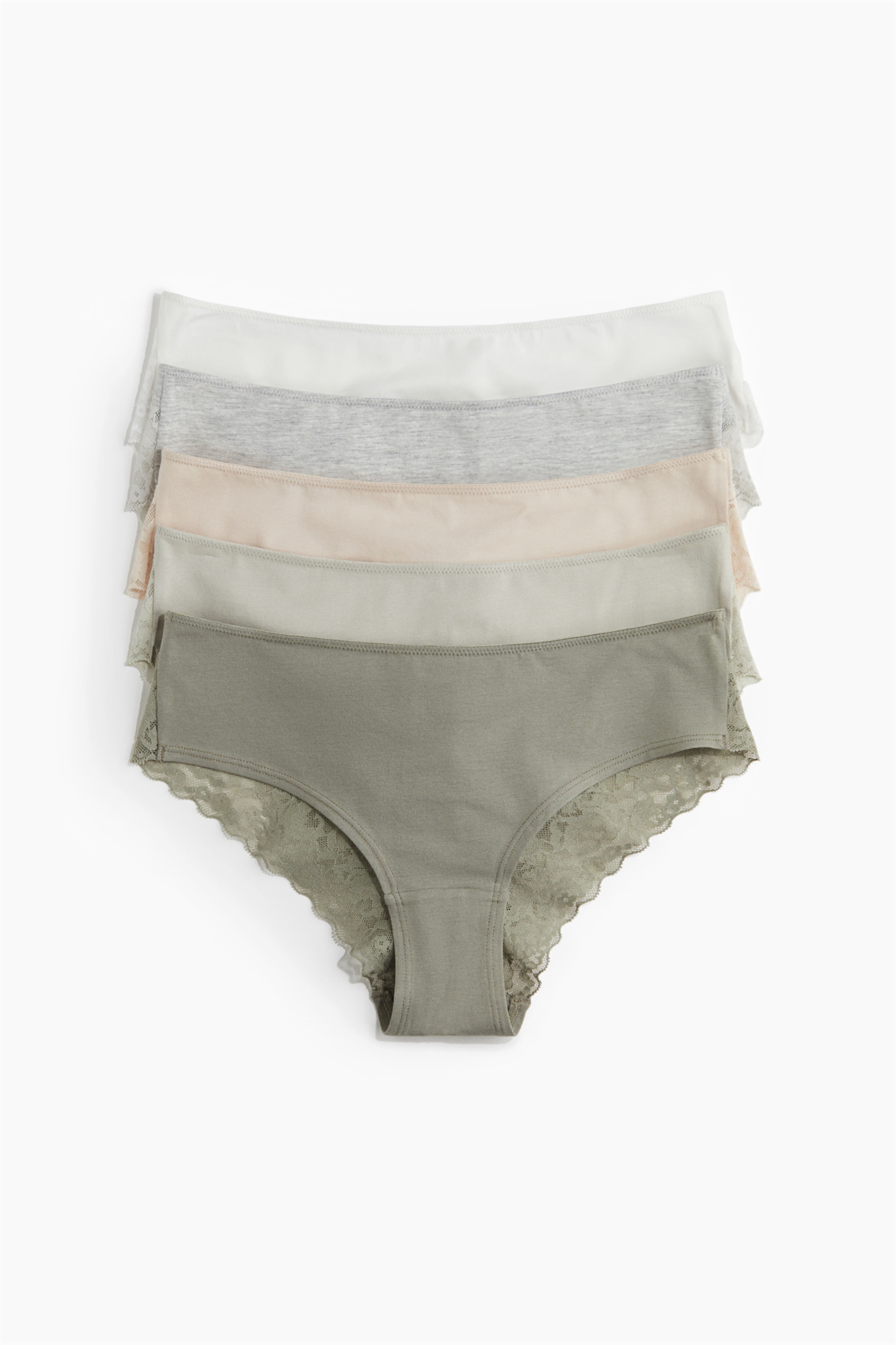 Трусы-хипстеры из джерси и кружева со средней линией талии, ластовицей и вырезом сзади.