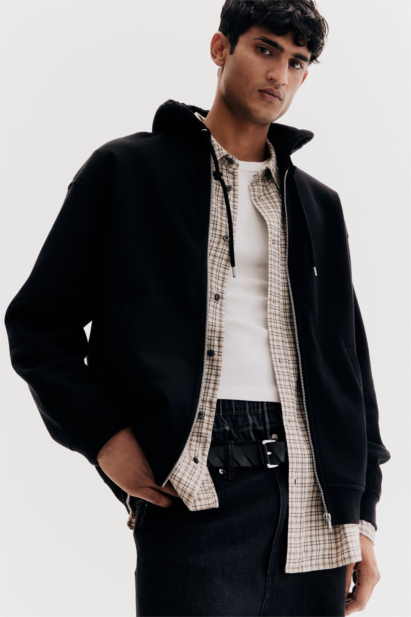 Толстовка на молнии из легкой толстовочной ткани из смеси хлопка с мягкой начесом внутри. Капюшон с капюшоном на подкладке из джерси, застежка-молния спереди, диагональные прорезные боковые карманы, широкие манжеты и подол в рубчик. Свободный крой для пышного, но не чрезмерно большого силуэта.