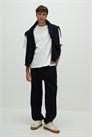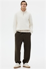 Тренировочные брюки средней плотности из хлопковой смеси с мягкой начесанной внутренней стороной. Эластичная резинка и шнурок на талии, карманы в боковых швах и ребристые манжеты. Свободный крой для непринужденного, но не слишком большого силуэта.