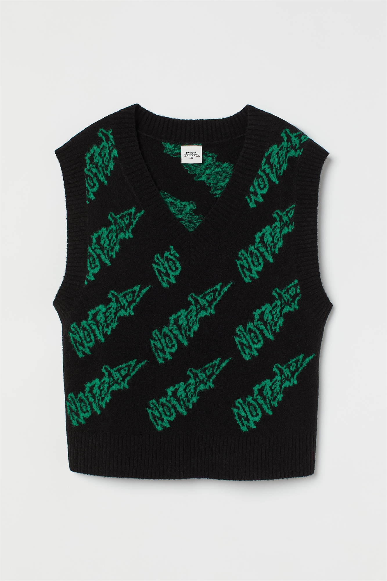 No Fear x H&M. Джемпер оверсайз с V-образным вырезом из жаккардового трикотажа. С ребристой отделкой по вырезу горловины, проймам и подолу.