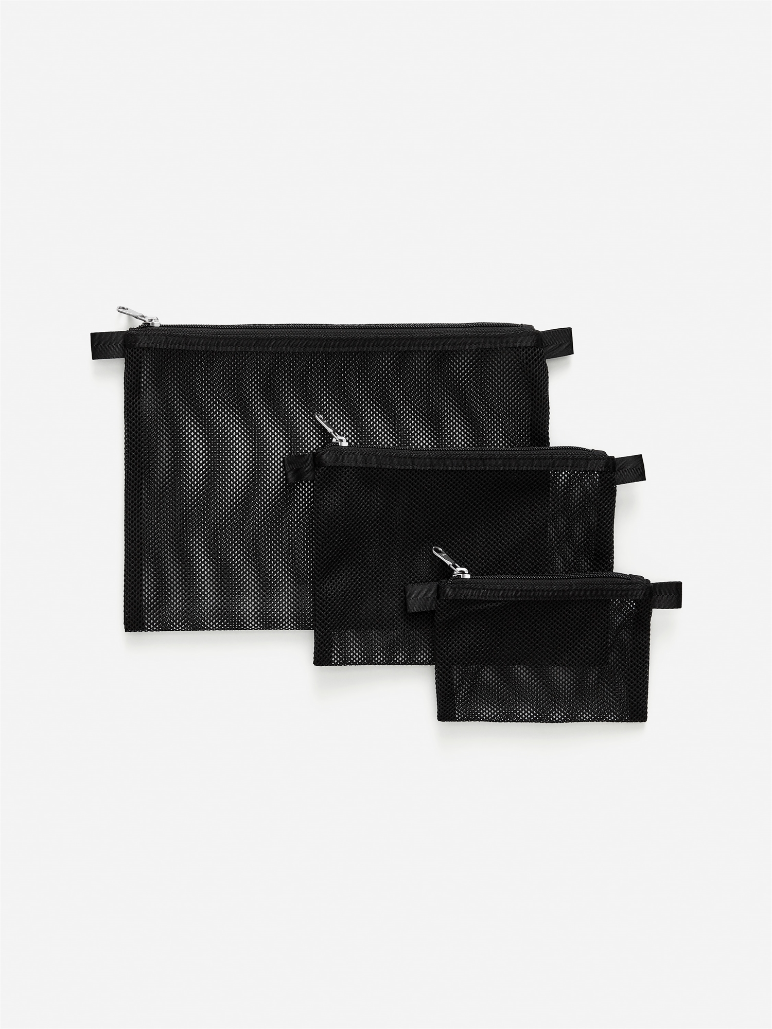 Набор из трех легких пакетов на молнии для удобной упаковки и упорядочивания дорожных вещей. Прочная прозрачная сетчатая ткань из полиэстера. Идеально подходят как для путешествий, так и для повседневного использования. Размер 15,5 x 10,5 см (малый), 22 x 15,5 см (средний), 31 x 22 см (большой).