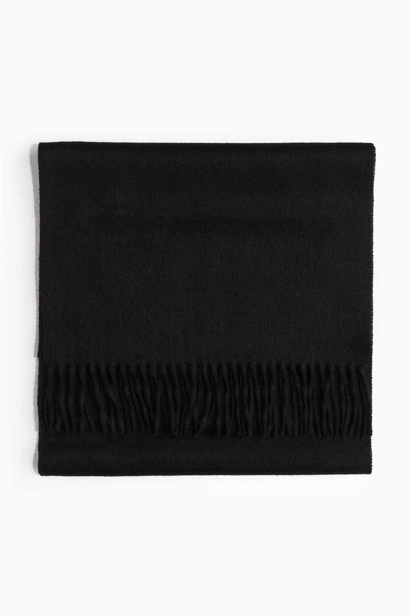 Шарф из мягкого кашемира тонкой вязки с бахромой по коротким сторонам.