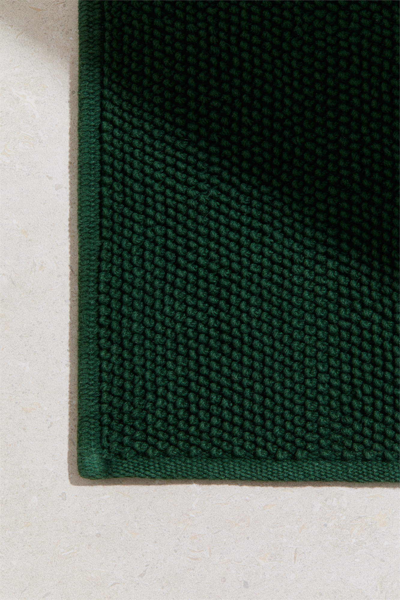 Коврик для ванной из мягкой, быстросохнущей хлопковой махры с высокой степенью впитываемости. Противоскользящие протекторы на обратной стороне. В серию входят полотенца разных размеров.