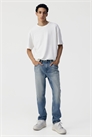 Джинсы с 5 карманами из хлопкового денима с легким стретчем для комфорта. Прямые штанины и зауженный крой от талии через бедра к подолу. Зауженный пояс и ширинка на молнии. Легко подобрать элегантный или спортивный стиль.
