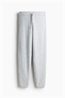 Джоггеры из мягкого, слегка начесанного трикотажа с небольшим содержанием шерсти. Высокая талия с эластичным поясом и утягивающим шнурком, зауженные ноги с ребристыми краями.