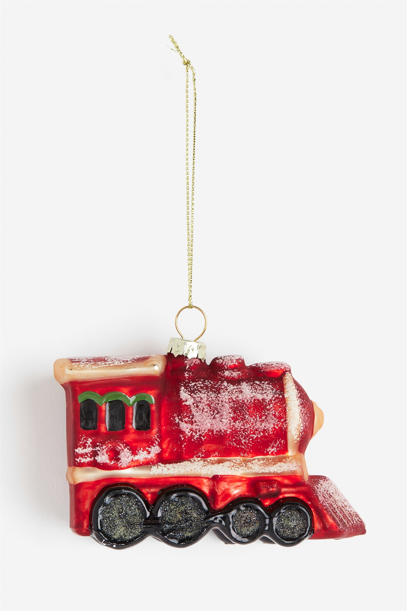 Стеклянное елочное украшение в виде автомобиля с елкой на крыше. Блестящий шнур для подвешивания. Высота 5 см. Длина 9 см.
