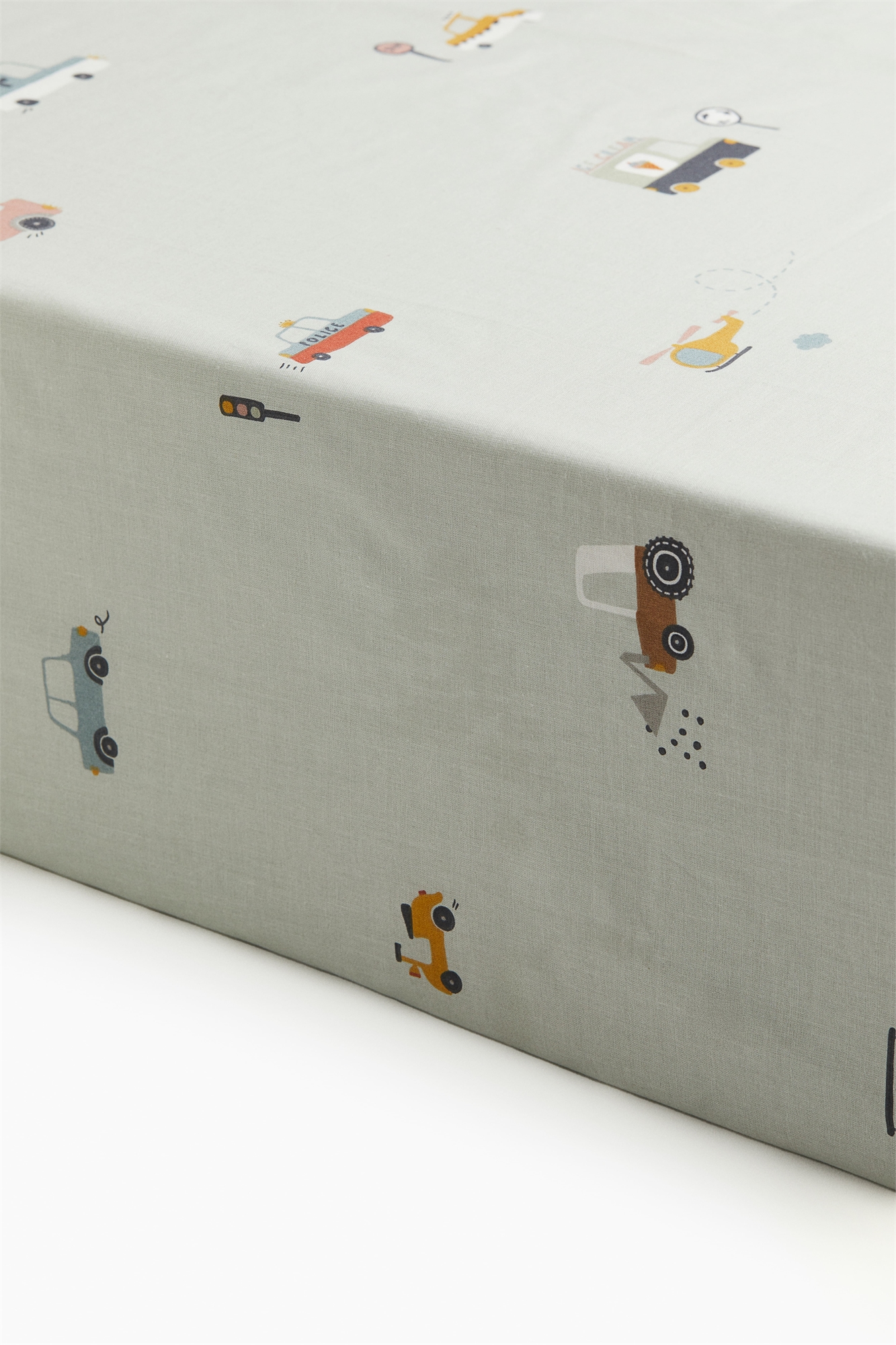 Простыня на резинке из хлопка с рисунком. Подходит для матрасов глубиной до 23 см.
