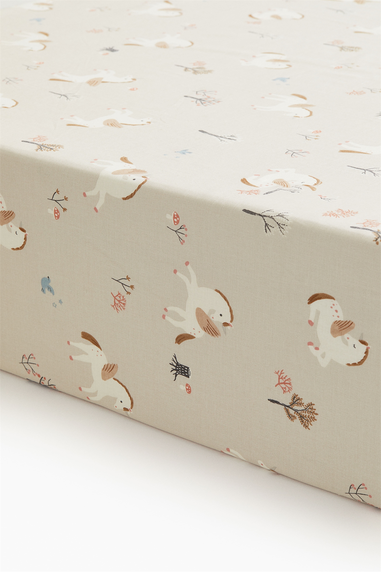 Простыня на резинке из хлопка с рисунком. Подходит для матрасов глубиной до 23 см.