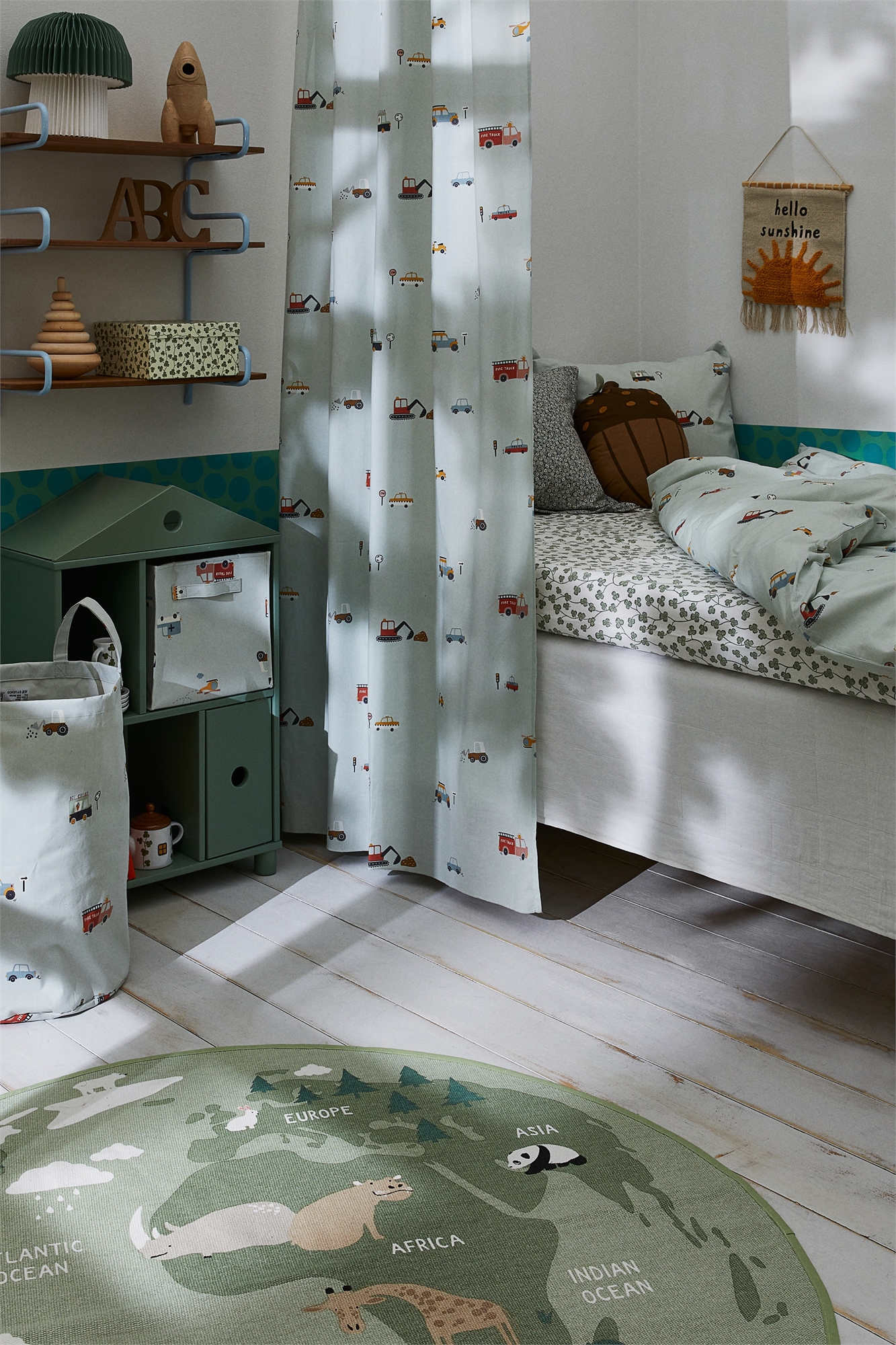Шторы из хлопчатобумажного полотна с рисунком по всей длине. Широкие петли в верхней части для подвешивания. Лента для подшивания входит в комплект.