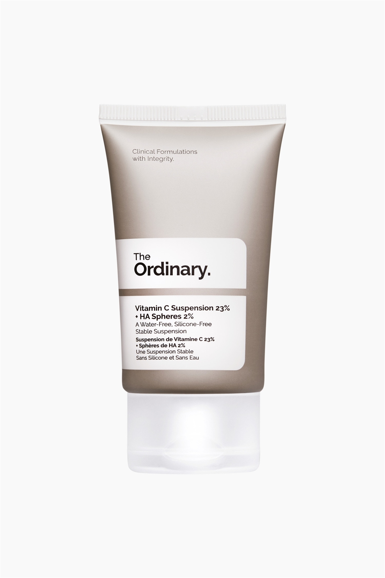 Vitamin C Suspension 23% + HA Spheres использует небуферизованный витамин С и гиалуроновую кислоту для заметного уменьшения признаков старения, осветляя и выравнивая неровный тон кожи. Эта безводная формула содержит 23% чистой L-аскорбиновой кислоты, которая остается абсолютно стабильной благодаря отсутствию воды. Безводная формула обогащена шариками гиалуроновой кислоты для дополнительного увлажнения. Примечание: слегка зернистая текстура продукта создается за счет растворения порошкообразного витамина С в маслянистой основе. Поэтому для впитывания в кожу может потребоваться несколько секунд. Чтобы кожа постепенно привыкала к активным ингредиентам, при необходимости средство можно разбавить кремовой основой.