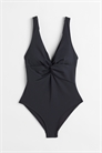 Полностью на подкладке, купальник с V-образным вырезом, очень плотно облегающий талию и придающий ей форму. Регулируемые бретели и чашечки со съемными вкладышами, которые формируют бюст и обеспечивают хорошую поддержку. Декоративный узел спереди и среднее покрытие сзади.