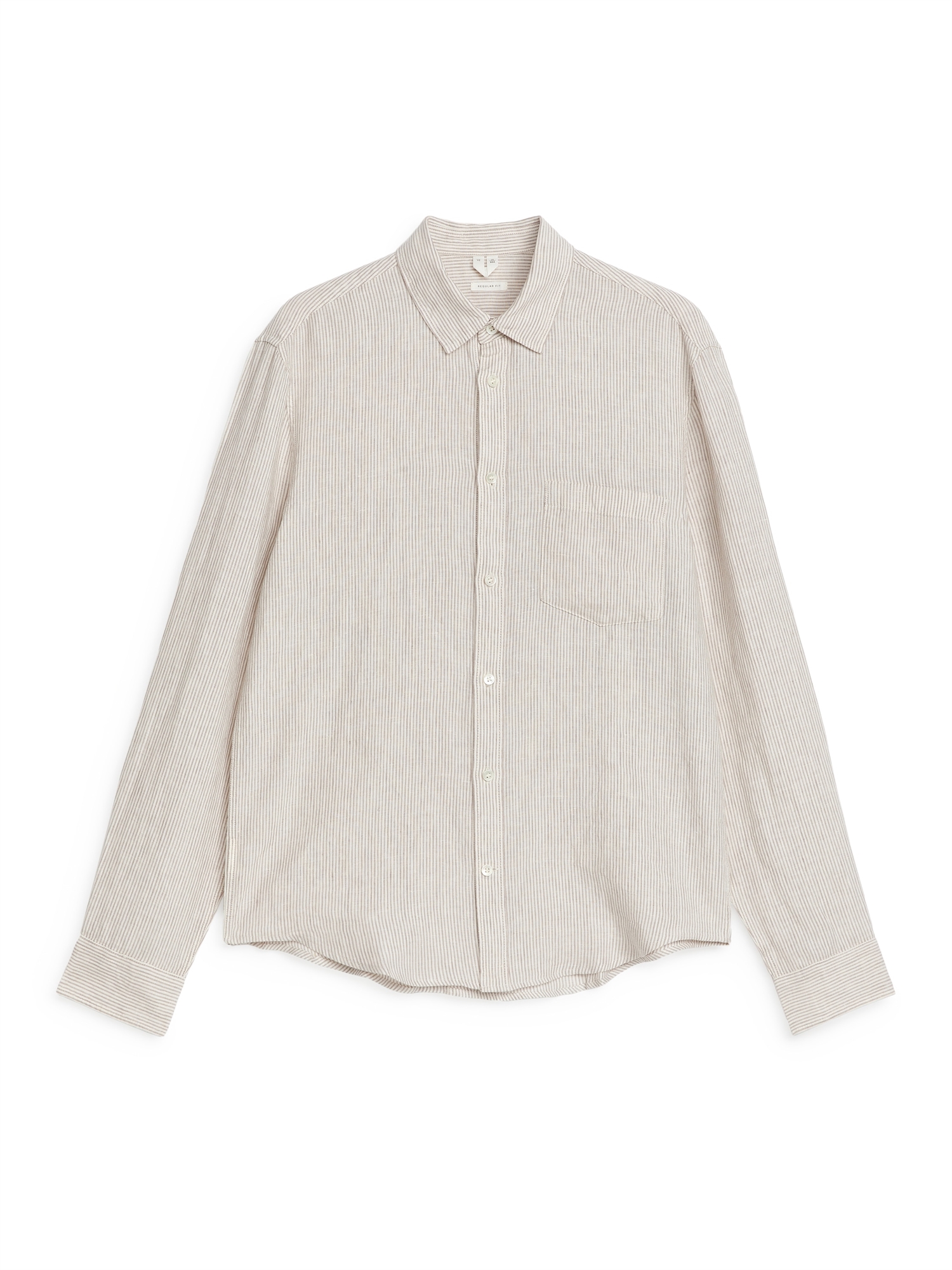 Изготовленная из чистого льна, эта рубашка регулярного покроя - предмет гардероба, который вы захотите включить в свою ротацию с наступлением теплых дней. Классические детали рубашки в современном стиле. Один нагрудный карман Слегка закругленный подол Перламутровые пуговицы - этот продукт содержит нетекстильные части животного происхождения