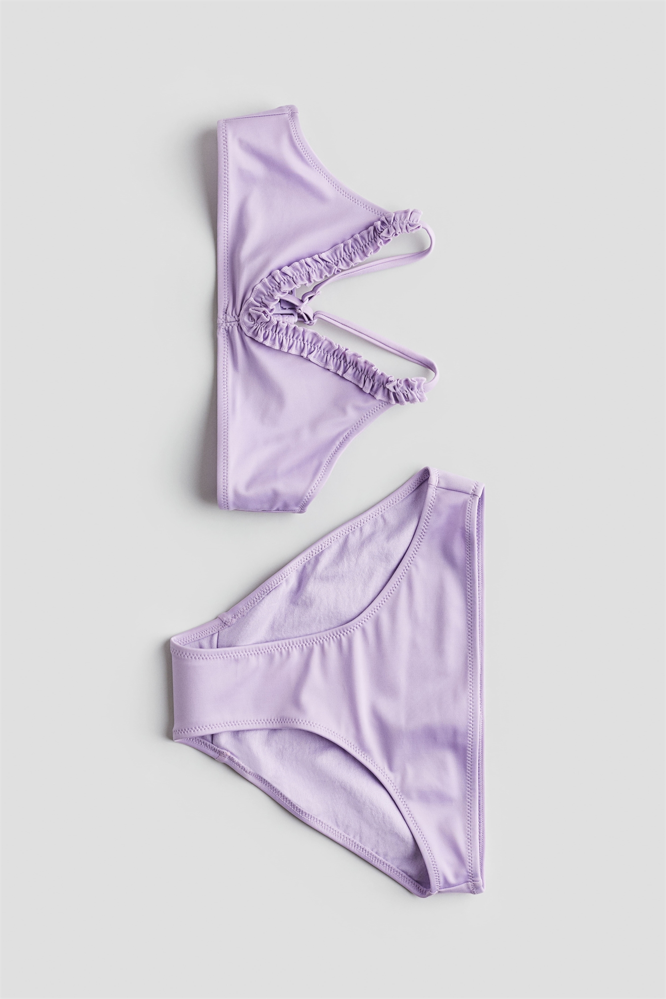 Полностью закрытое бикини на подкладке, с верхней частью в форме халтернека и подходящими нижними чашечками. Топ с узкой регулируемой бретелью на шее и пластиковой застежкой сзади.