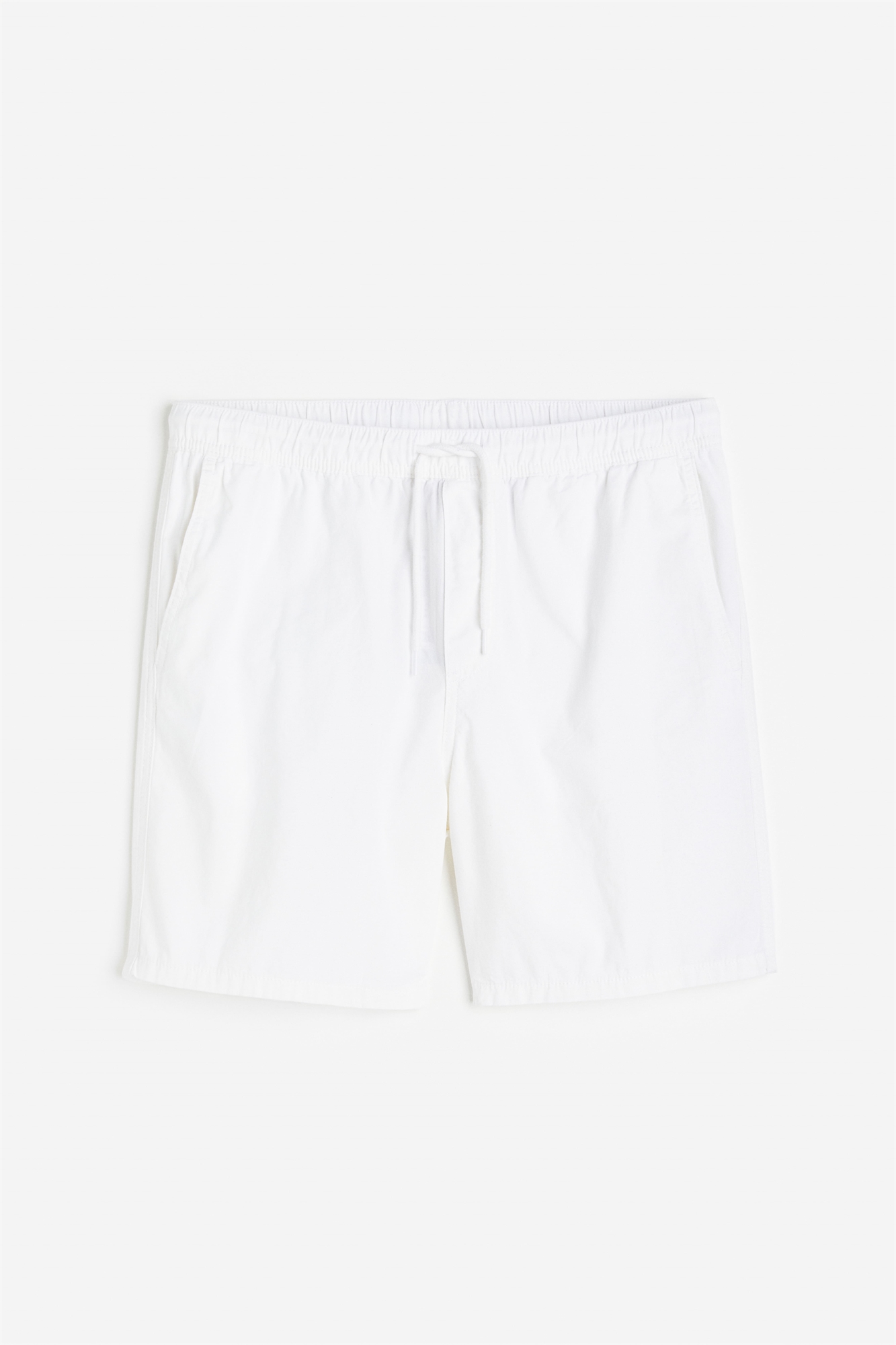 Шорты Regular-Fit из хлопкового полотна с эластичной отделкой и эластичным поясом на талии, фальшивая ширинка, боковые карманы и накладной задний карман.