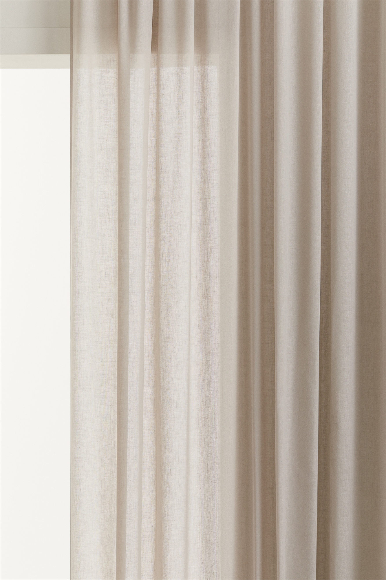 Длинные шторы из вуали, изготовленной из смеси хлопка и полиэстера. Многоходовой заголовок на шторах позволяет подвешивать их в разных стилях, что делает их пригодными для различных штанг или карнизов и позволяет легко менять внешний вид штор. Эти шторы пропускают свет в комнату, но при этом обеспечивают приватность. Крючки в комплект не входят. Окантованные.
