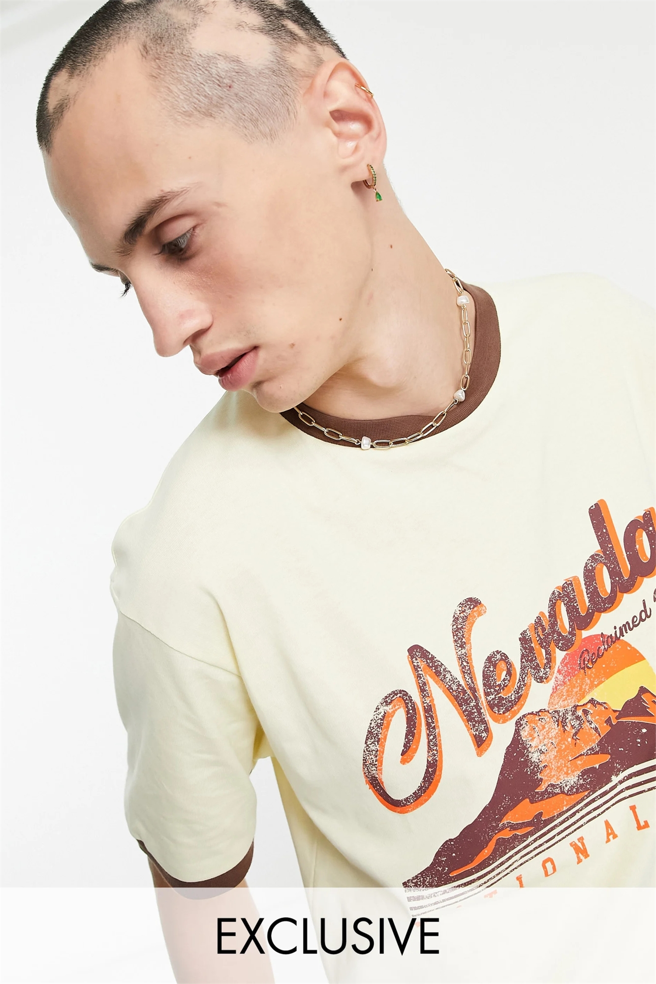 Футболка из хлопка с принтом в стиле 70-х с горным пейзажем — КРЕМОВЫЙ