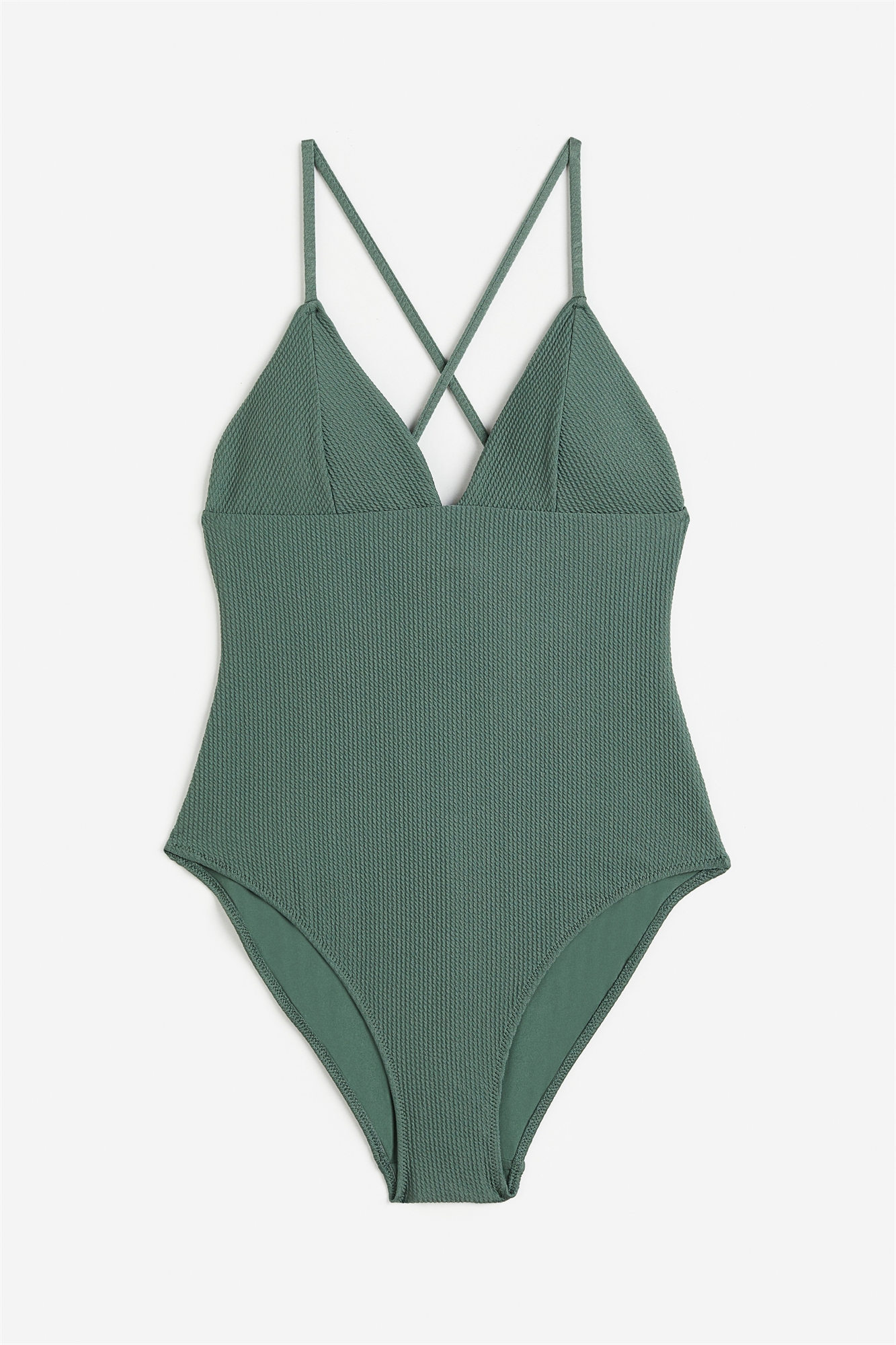 Полностью на подкладке, фактурный купальник с V-образным вырезом, регулируемыми бретелями и чашечками со съемными вкладышами, придающими форму бюсту и обеспечивающими хорошую поддержку. Среднее покрытие сзади.