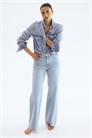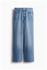 Джинсы с 5 карманами из моющегося хлопкового денима с высокой талией, ширинкой на молнии и пуговице и широкими прямыми ногами.