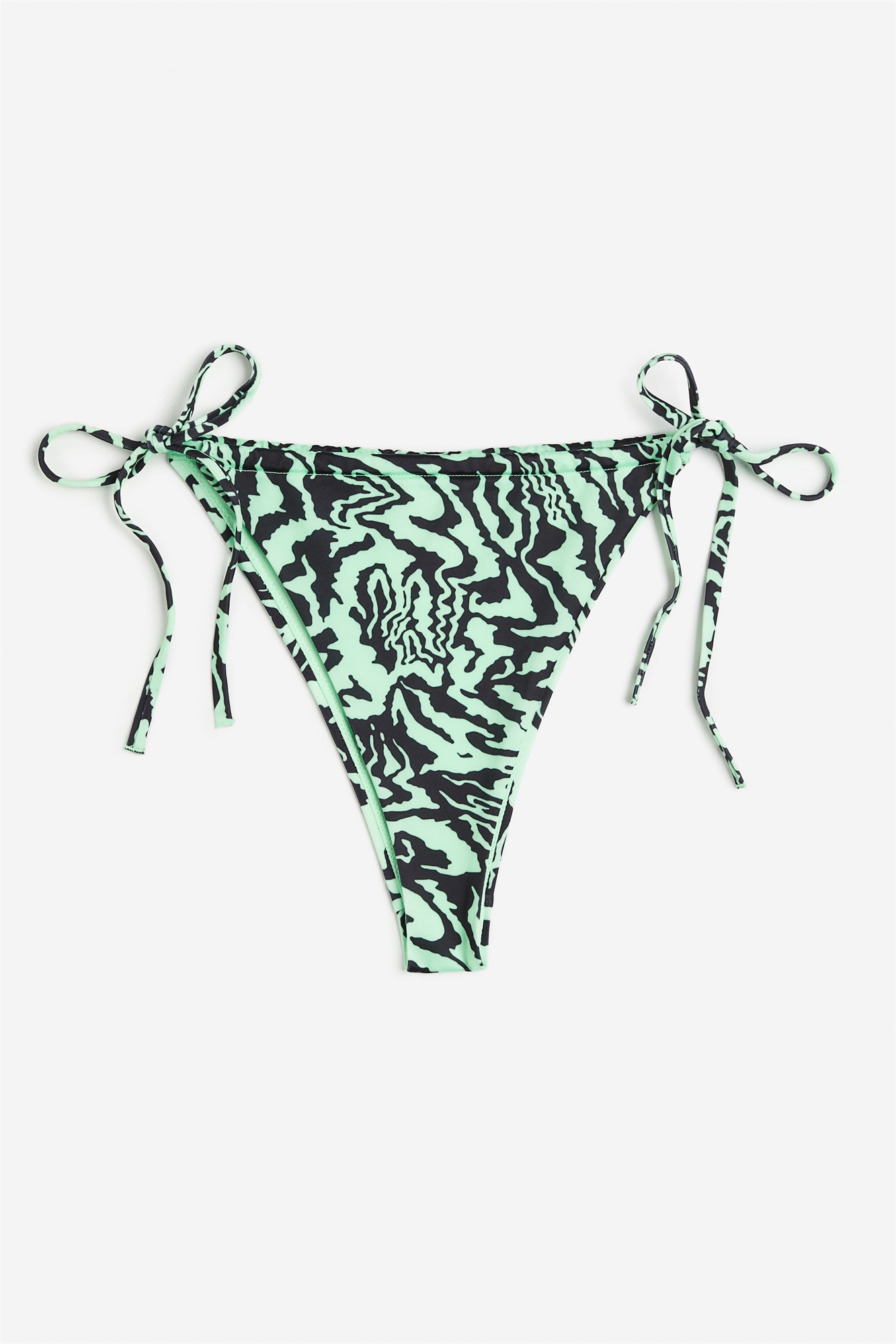 Полностью закрытые трусы-бикини со средней талией, завязками по бокам и высоким разрезом сзади.