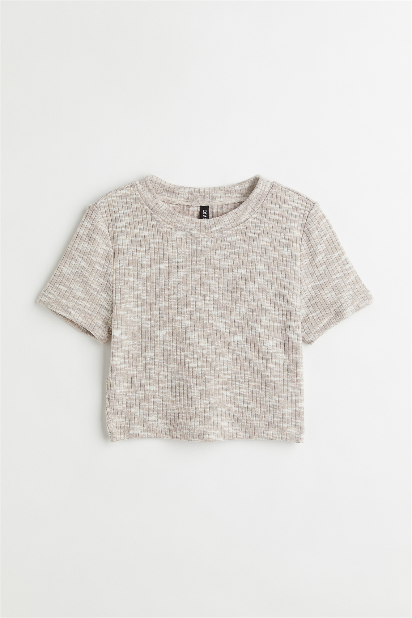Топ в рубчик из мягкого тонкого трикотажа с круглым вырезом и короткими рукавами.