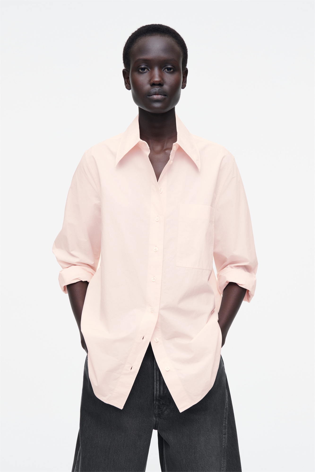 Эта бледно-розовая рубашка из хрустящего хлопкового поплина - основной элемент женской коллекции COS. Она сшита по фигуре в стиле "оверсайз", который подчеркивает изогнутый подол, и имеет острый заостренный воротник, длинные рукава и накладной карман на груди. Застежка на пуговицах Оболочка: 100% хлопок. Без учета отделки / Машинная стирка Длина по спинке для размера EU 36 составляет 78 см / Модель носит размер EU 36