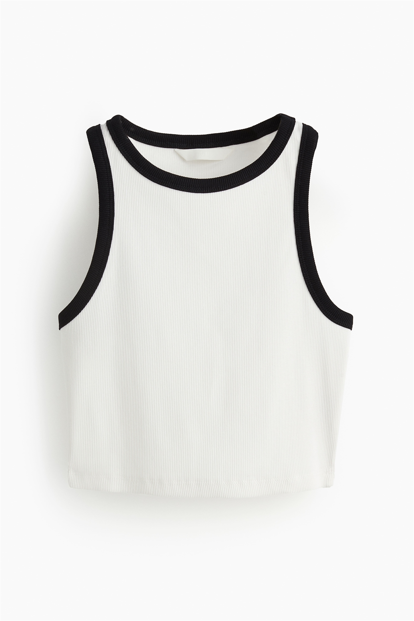 Короткая, облегающая майка из ребристого хлопкового джерси с узкой отделкой по вырезу горловины и проймам.