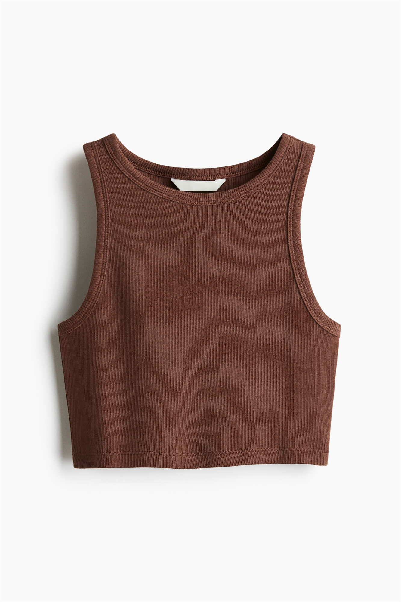 Короткая, облегающая майка из ребристого хлопкового джерси с узкой отделкой по вырезу горловины и проймам.