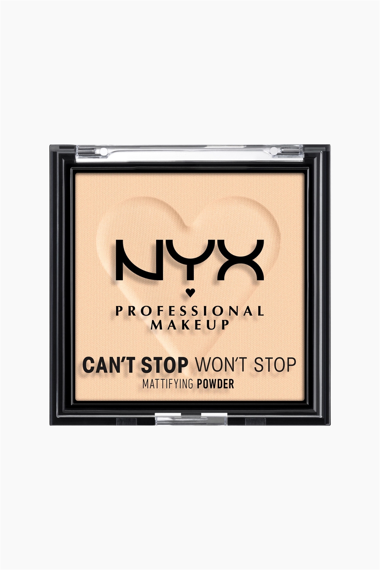 Дышащая и легкая матирующая пудра Can't Stop Won't Stop от NYX Professional Makeup матирует кожу лица и придает ей эластичность. Кожа остается безупречной в течение всего дня, а пудра не размазывается и не стирается. Матирующая пудра CSWS обеспечивает надежное покрытие, не оставляя кожу сухой или пепельной. Она буквально тает в коже и не оседает в мелких морщинках, а обеспечивает более ровный тон. Пудра, поглощающая блеск и жир, не требует нанесения в течение дня, а также продлевает стойкость макияжа - пудра для матового, гладкого и мягкого цвета лица!