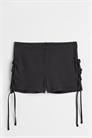 Шорты из джерси-стрейч со шнуровкой по бокам. Регулярная талия с утяжкой.