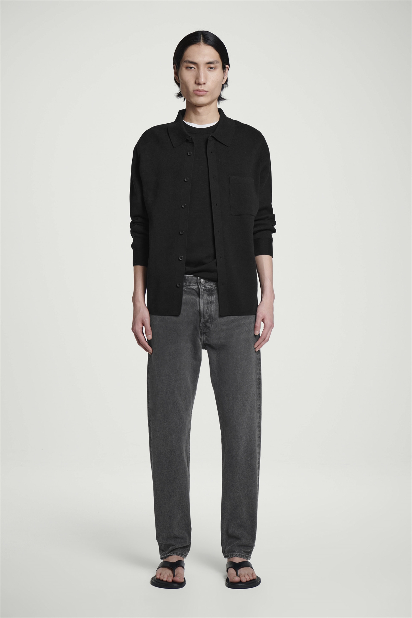 Джинсы классического кроя от COS сшиты из 12-узлового неэластичного денима из переработанного хлопка и украшены контрастной строчкой. Они имеют среднюю посадку, которая сидит чуть ниже талии, и зауженные ноги, сужающиеся к лодыжкам. Чтобы сохранить универсальный черный оттенок, стирайте их в машинке, а не в пятнах. Regular fit, tapered leg, mid rise, full length Button fly, 5-pocket design Органический хлопок выращен из негенетически модифицированных семян без использования химических удобрений и пестицидов Состав: 80% органический хлопок, 20% переработанный хлопок. Без учета отделки / Машинная стирка Внутренняя длина штанины размера 32 составляет 77,5 см / Модель носит размер 32
