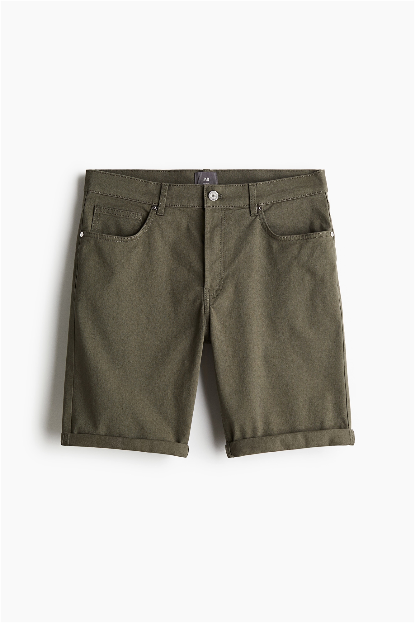 Шорты с 5 карманами из прочного хлопкового твила с зауженным кроем. Застежка на молнию и пуговицу спереди.