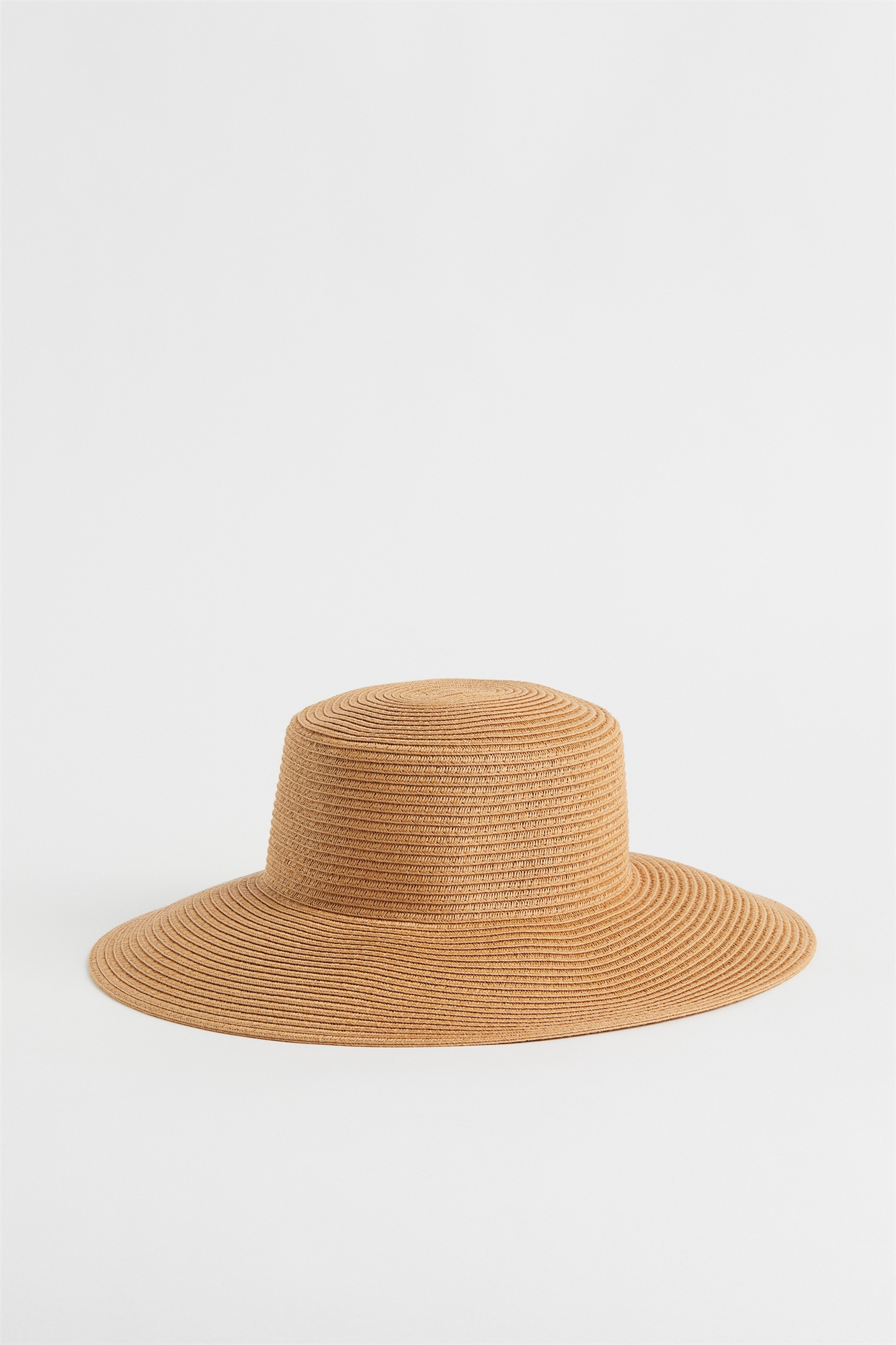 Шляпа из плетеной бумажной соломки с широким покатым околышем и лентой из гросгрейн на внутренней стороне.