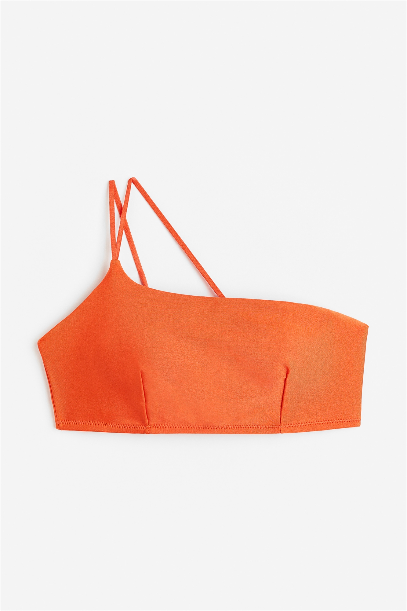 Бикини с подкладкой и заниженной талией, асимметричного кроя, с супертонкой регулируемой двойной бретелью. Чашечки с легкой набивкой и съемными вкладышами придают бюсту форму и хорошо поддерживают его. Без застежки.