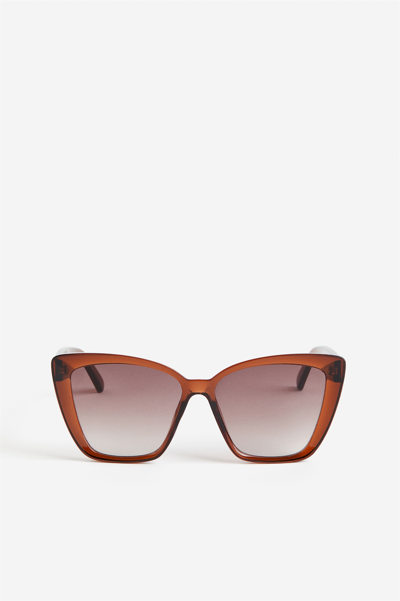Солнцезащитные очки "кошачий глаз" с пластиковой оправой и боковыми дужками и тонированными пластиковыми линзами с УФ-защитой.