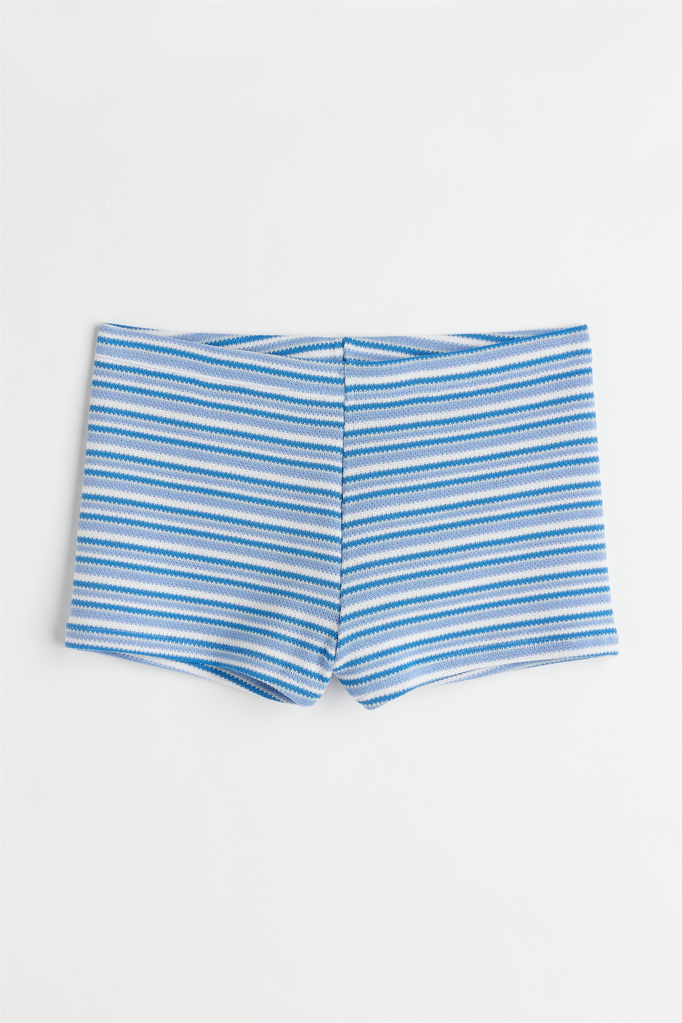 Короткие, облегающие фигуру шорты из мягкого трикотажа в технике вязания крючком. Пояс на талии с закрытой резинкой.