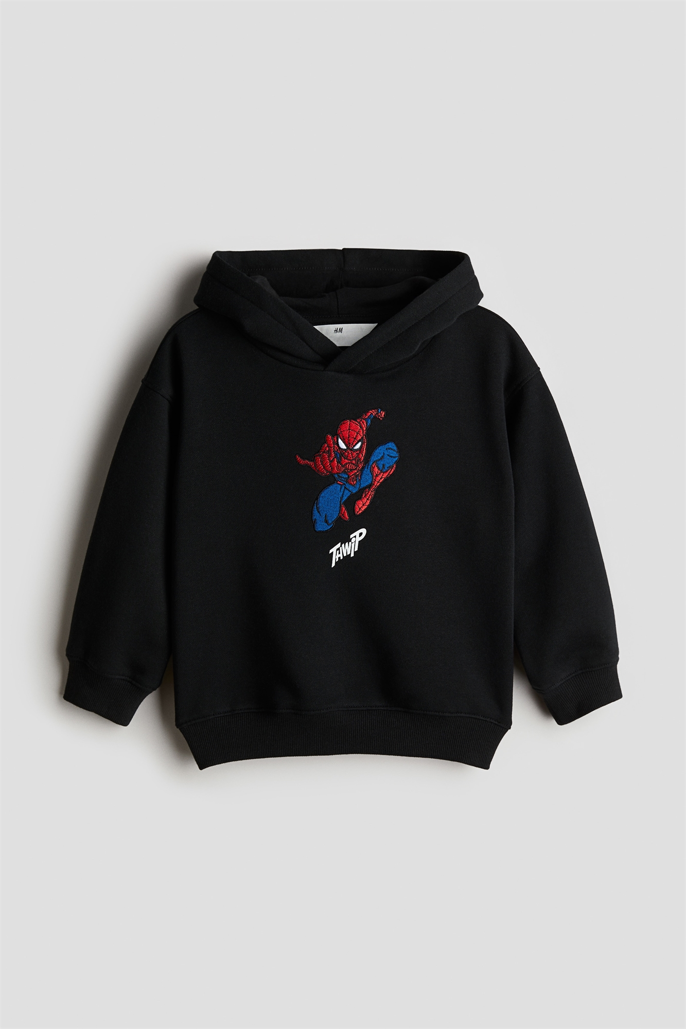 Свободный крой толстовки из принтованной ткани с мягкой начесом внутри. Капюшон на подкладке, накидка спереди, спущенные плечи, длинные рукава, манжеты и подол в рубчик.