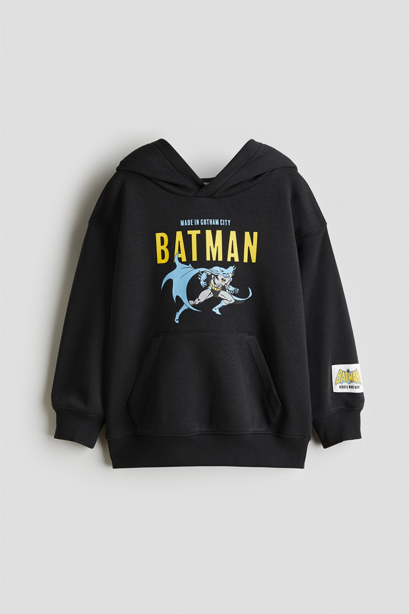 Свободный крой толстовки из принтованной ткани с мягкой начесом внутри. Капюшон на подкладке, накидка спереди, спущенные плечи, длинные рукава, манжеты и подол в рубчик.
