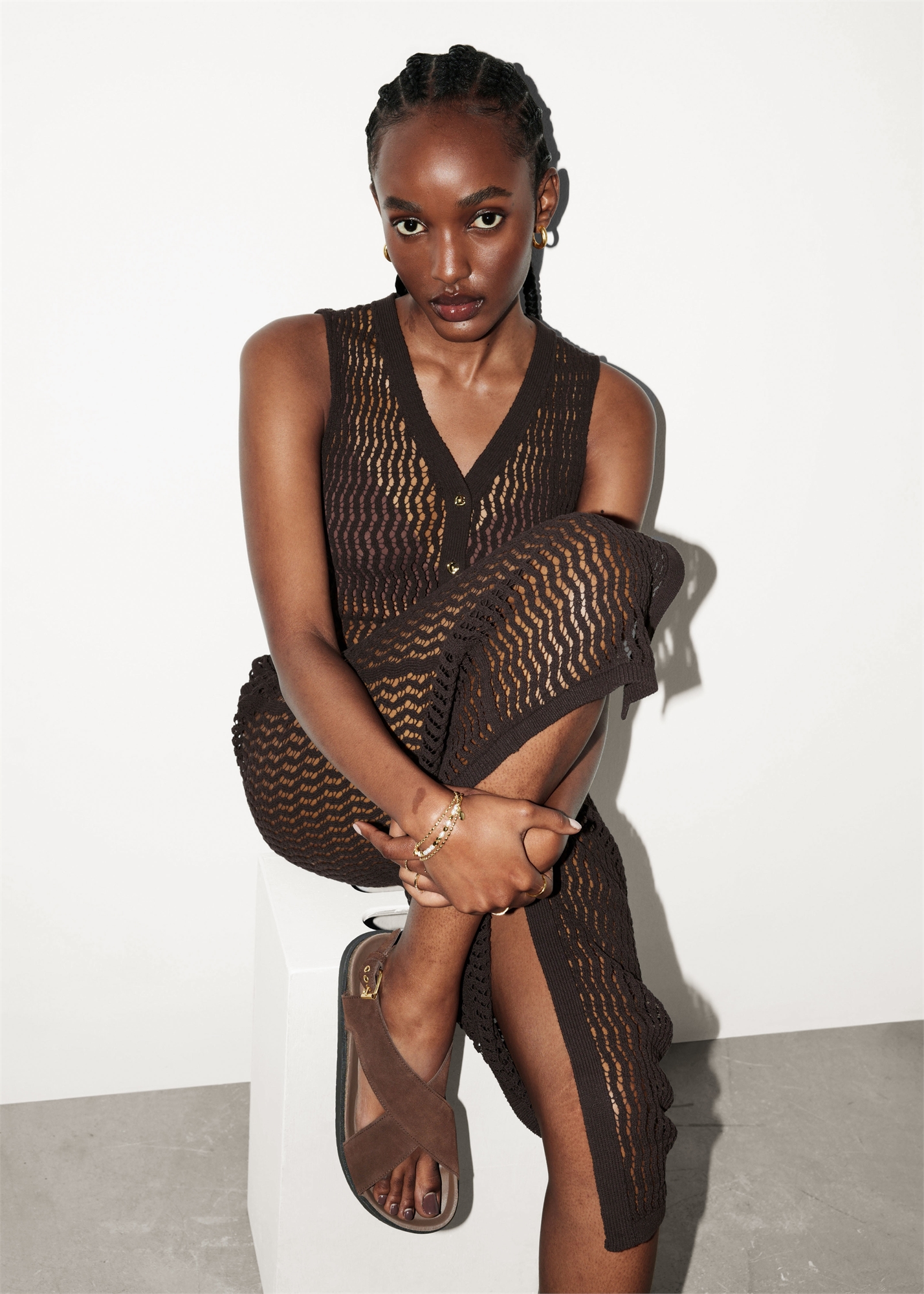 Кожаные сандалии с перекрещивающимися ремешками, застегивающимися на регулируемую пряжку. Толстая резиновая подошва Высота подошвы: 2 см / 0,8 дюйма