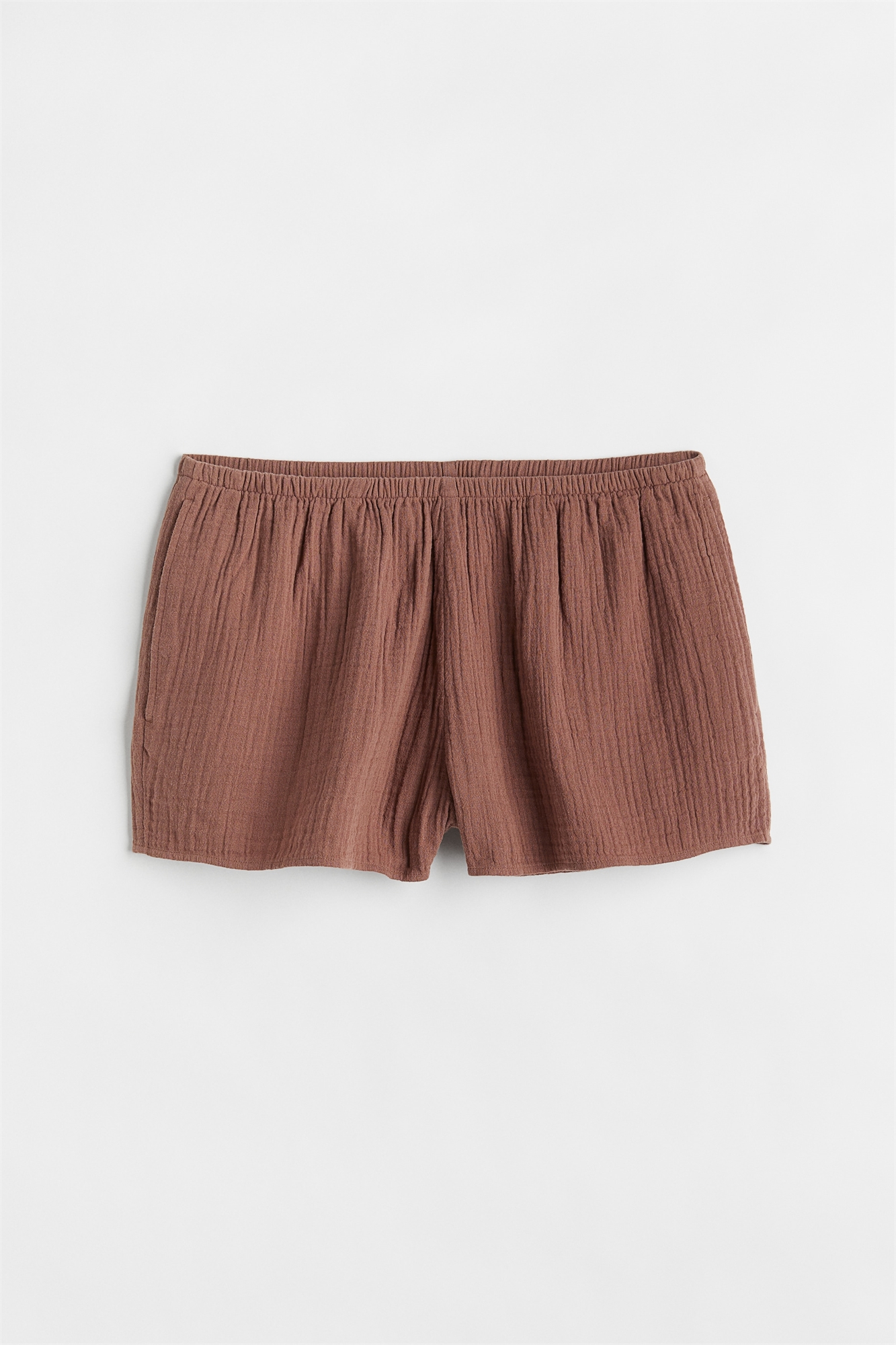 Короткие шорты из мягкой, фактурной хлопковой ткани. С узким закрытым эластичным поясом и незаметными карманами в боковых швах.
