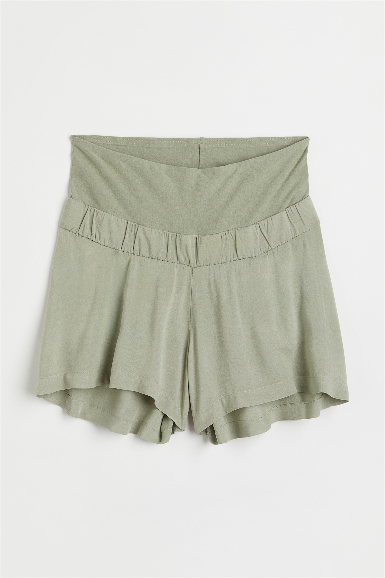 Шорты из вискозного полотна с эластичной вставкой на талии и широкой панелью из джерси для лучшей посадки на животе.