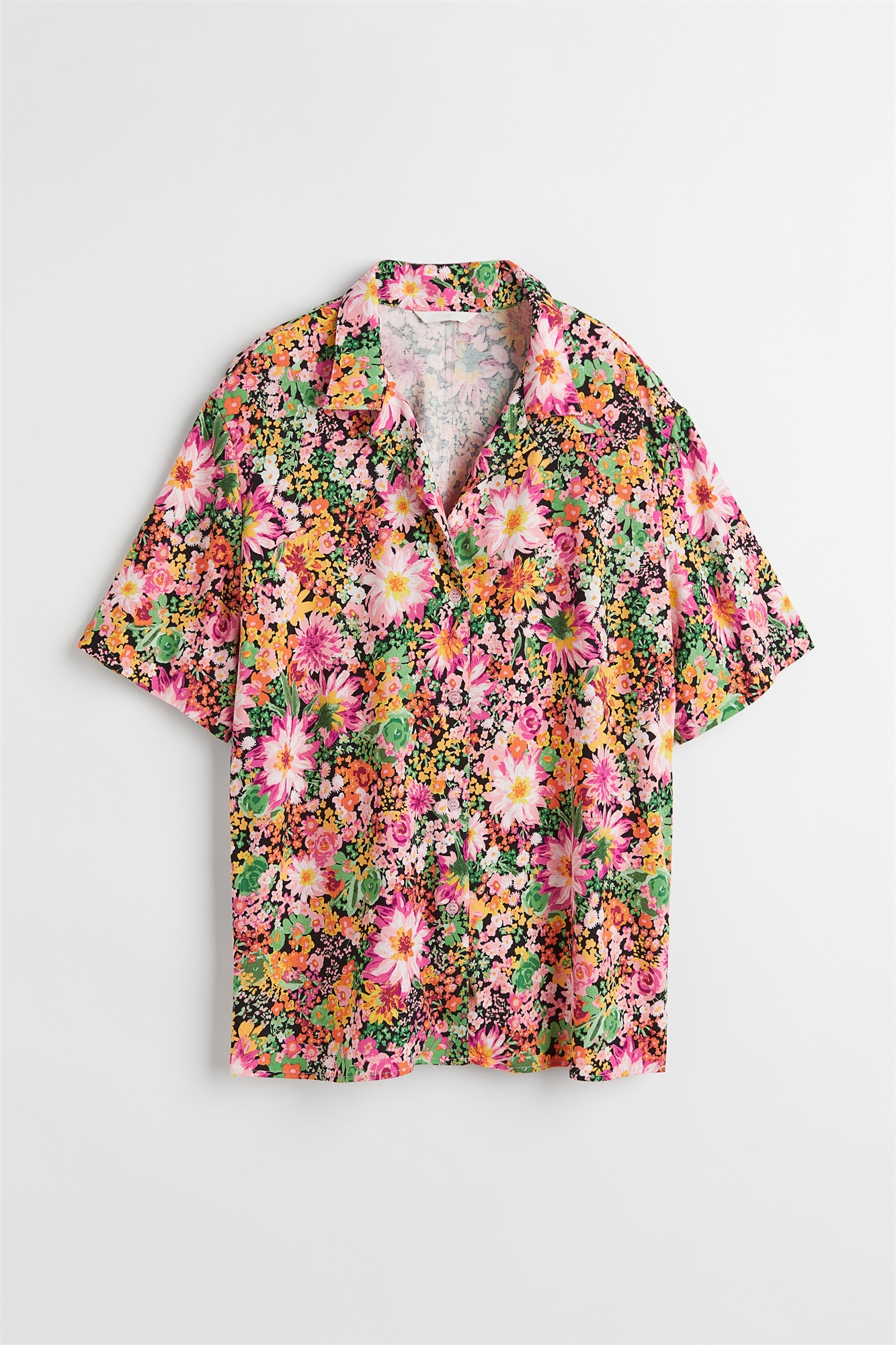 Рубашка с короткими рукавами из вискозного полотна. Свободный крой с курортным воротником и пуговицами спереди.