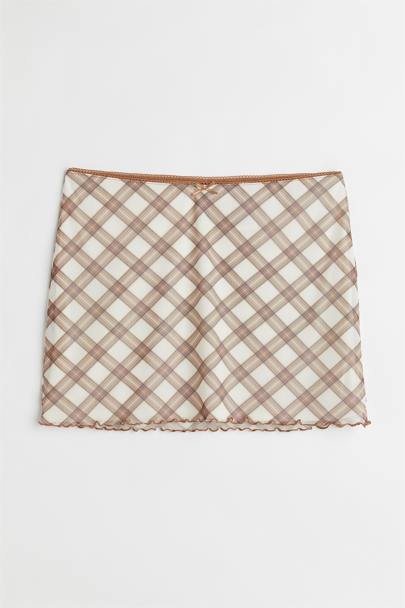 Короткая приталенная юбка из воздушной сетки с узором. Регулярная талия с узкой, скрытой эластичной резинкой, обрезной край и маленький декоративный бантик спереди. Подол с оверлоком. На подкладке.